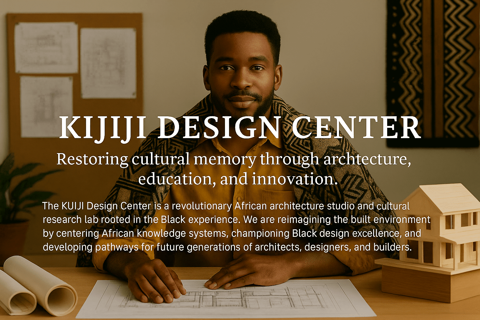 Less than 2% of licensed architects in the United States are Black. The KIJIJI Design Center exists to change that—by igniting the imaginations of Black children, cultivating African-centered design thinking, and building pathways to careers that shape the built environment in our image.